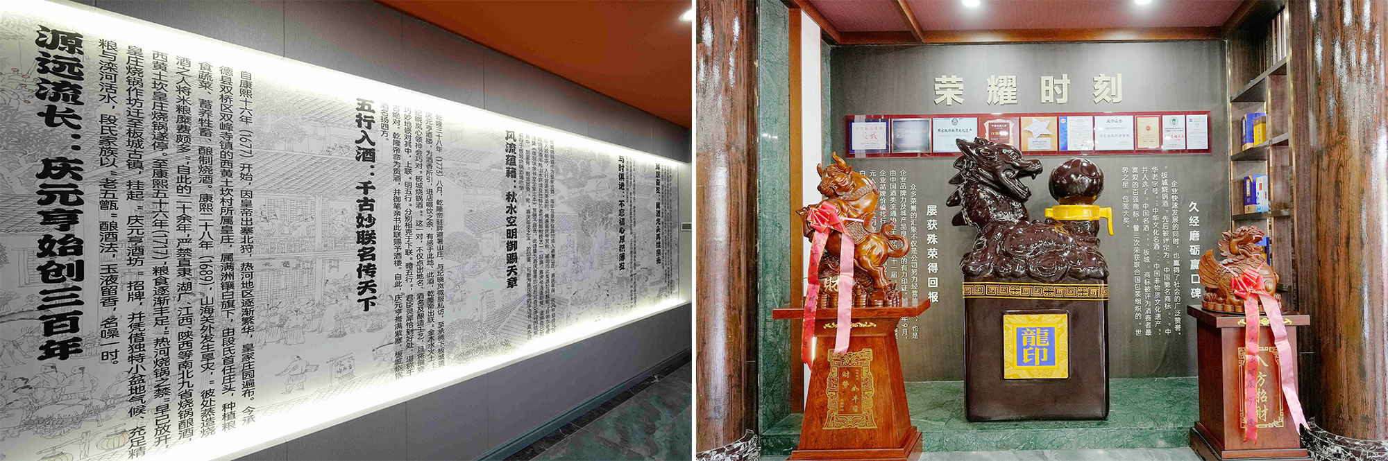 康熙五十六年(1717年),段氏家族以“老五甑”釀酒法,掛起“慶元亨酒坊”招牌;乾隆三十八年(1773年),乾隆皇帝留下“金木水火土、板城燒鍋酒”的千古絕對(duì),自此,“慶元亨酒坊”憑借板城燒鍋酒名揚(yáng)天下,并先后獲得“中華老字號(hào)”、“國(guó)家級(jí)特級(jí)酒家”殊榮。板城酒業(yè)慶元亨(邯鄲磁縣店)的開(kāi)業(yè),是百年慶元亨新的篇章,也是板城品牌發(fā)展的新里程碑,更是板城與消費(fèi)者溝通的又一陣地。